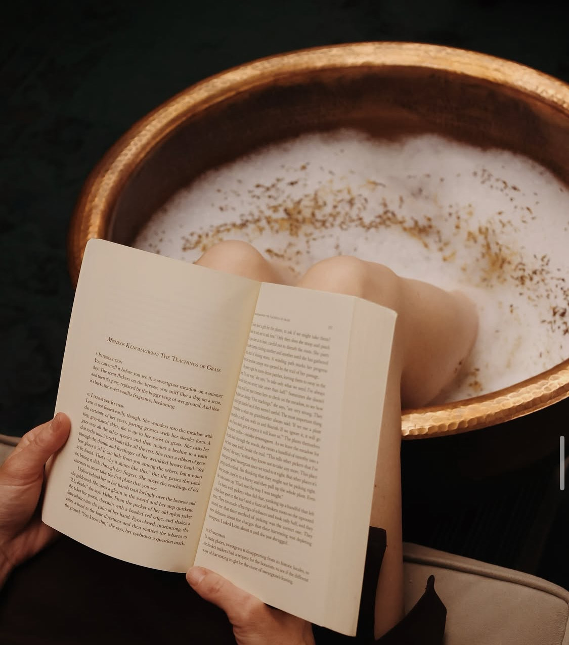 What to expect. Please arrive 10-15 minutes early, and wear something comfortable that can be rolled up to your knees. Our foot soak services are 60 minutes long and include a “warm-up” about half way through your soaking experience. Discover the complete relaxation that comes with a foot soak in our beautiful copper bowls!